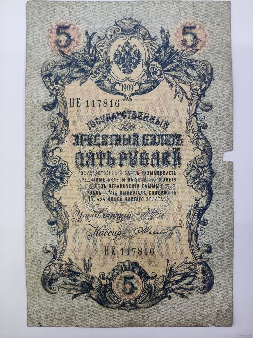 5 рублей 1909 Шипов Шмидт серия НЕ