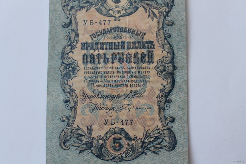 5 рублей 1909г. Шипов - Бубякин.Серия УБ-477
