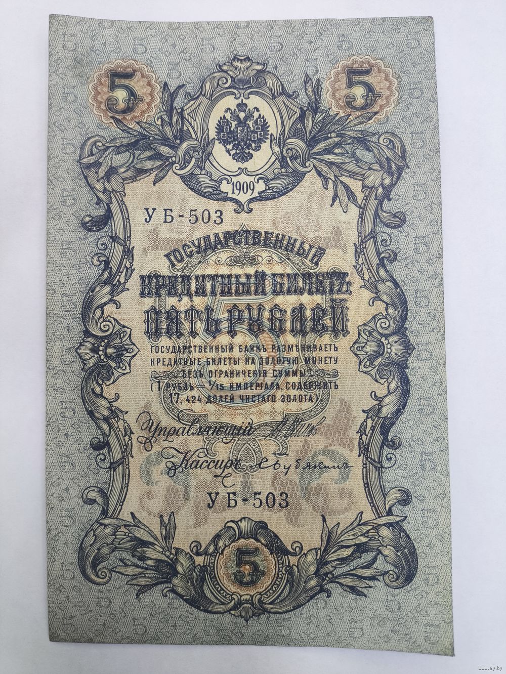 5 рублей 1909г. Шипов - Бубякин.Серия Уб-503