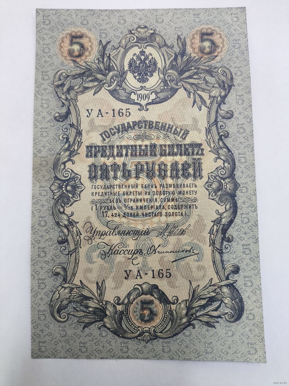 5 рублей 1909г. Шипов - Овчинников.Серия УА-165