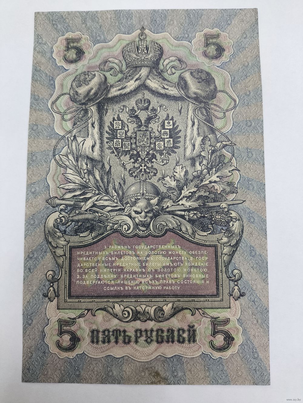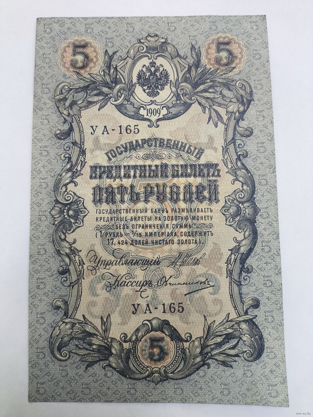 5 рублей 1909г. Шипов - Овчинников.Серия УА-165