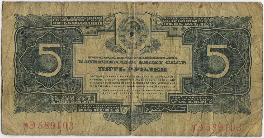 5 рублей 1934 г. серия мЭ 589103