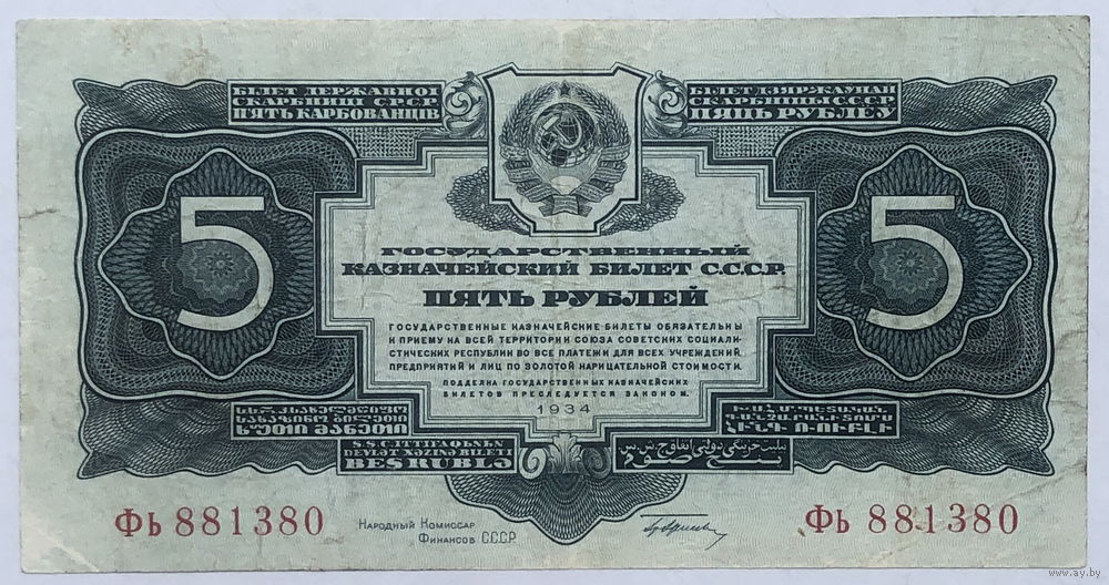 5 рублей 1934 с подписью