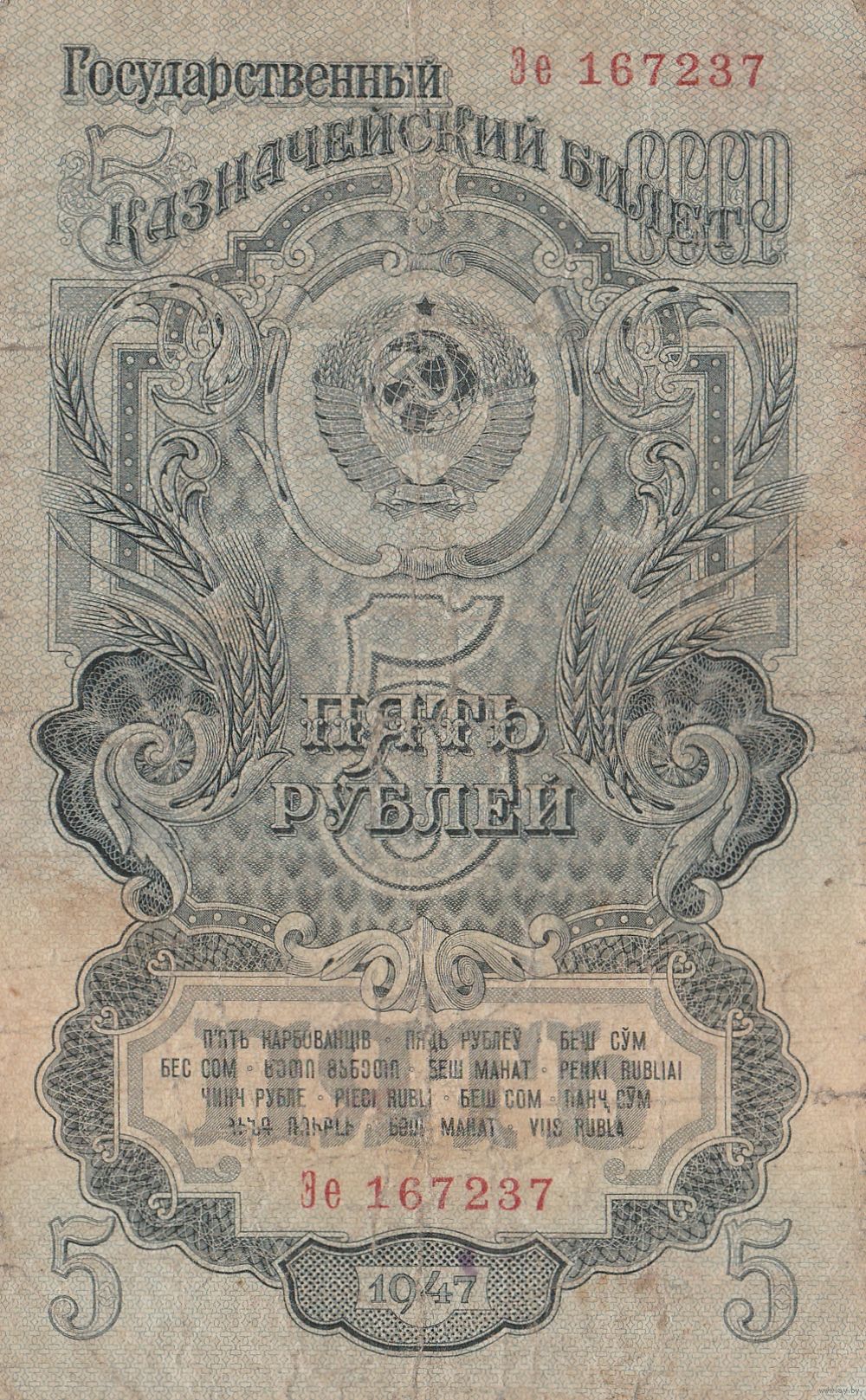 5 рублей 1947 года. Эе