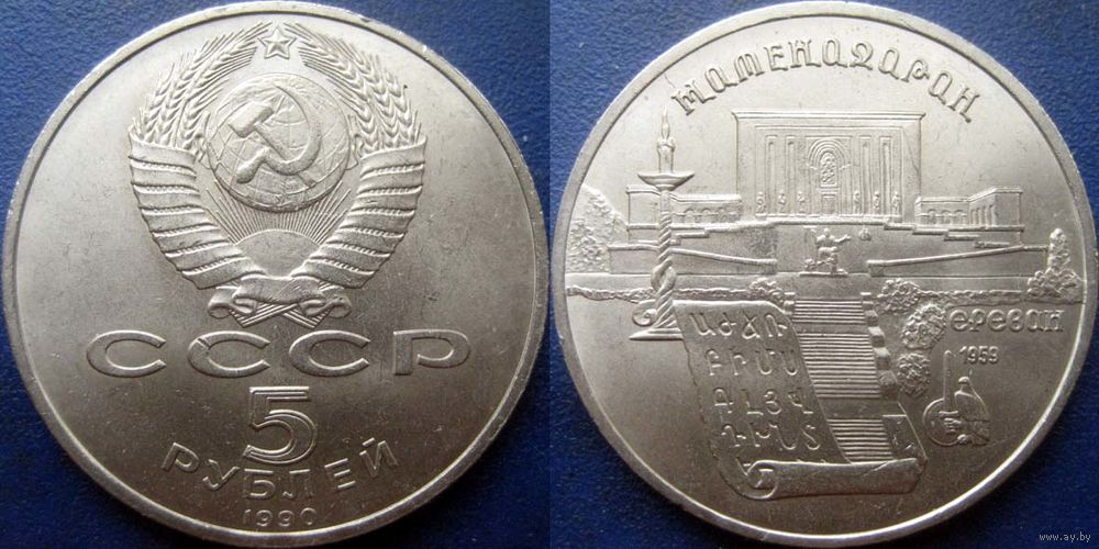 5 рублей 1990 года Матенадаран. UNC
