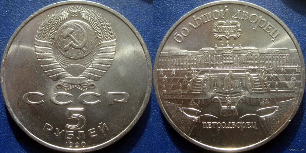 5 рублей 1990 года Петродворец. UNC