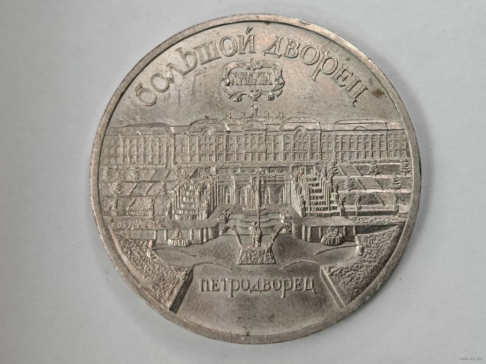 5 рублей 1990 года СССР. Большой дворец, г. Петродворец
