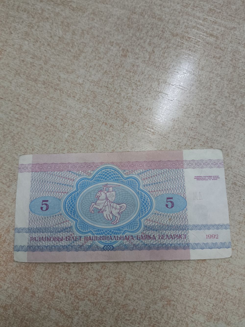 5 рублей 1992 год . Беларусь . Хорошее состояние . Серия АМ.