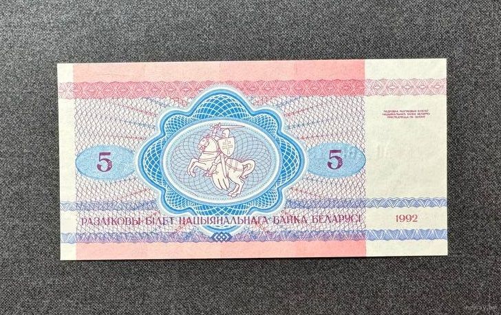 5 рублей 1992 года серия АО (UNC)