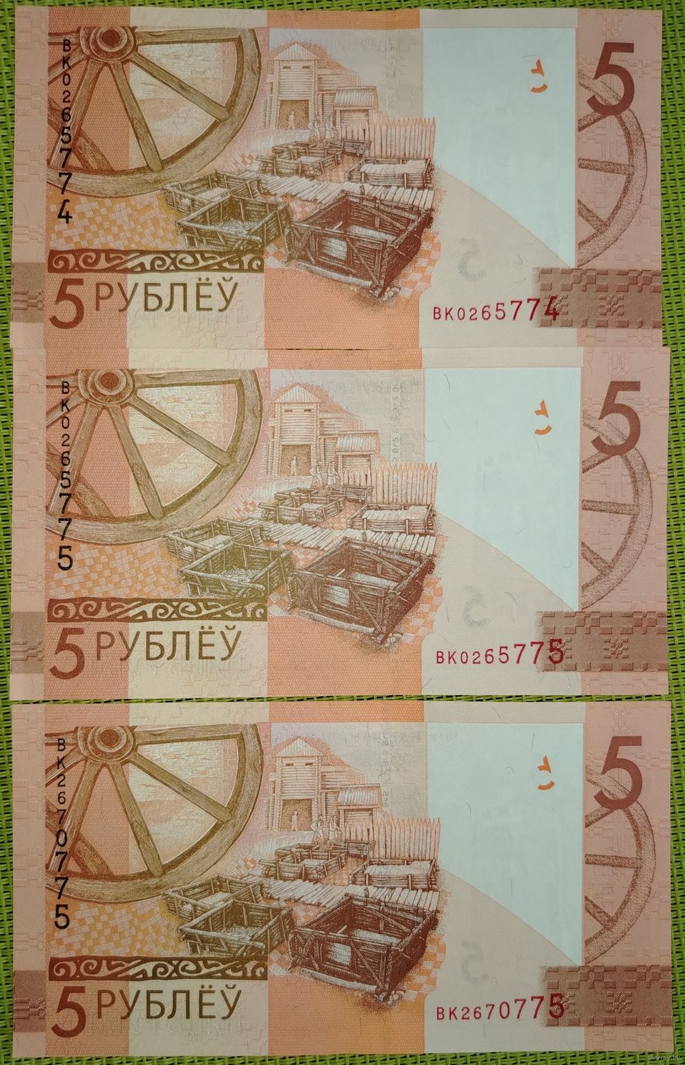 5 рублей 2020 года, серия ВК. Две купюры подряд.