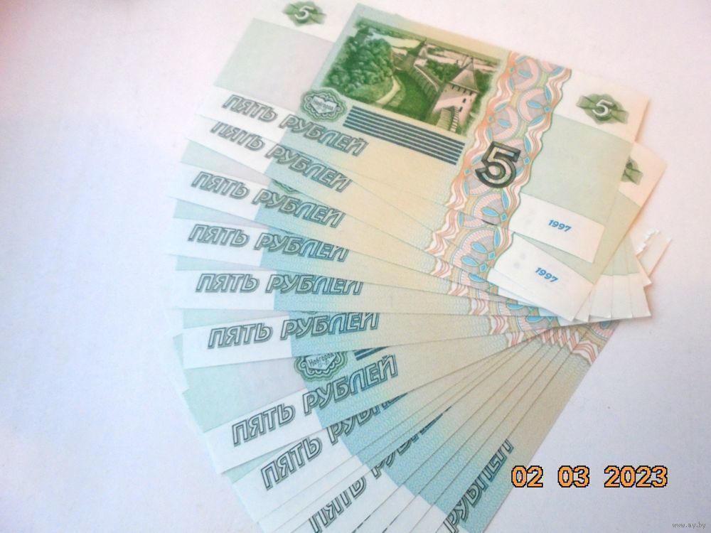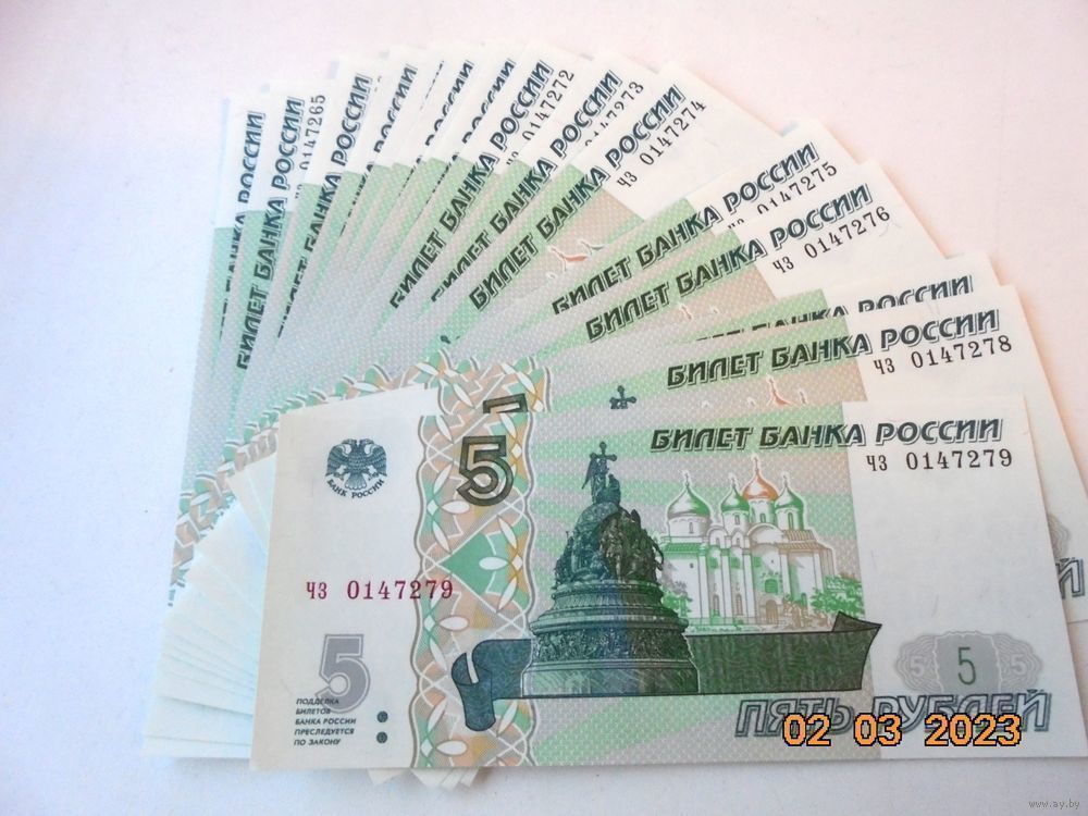 5 рублей Россия 1997 (2022) - цена за 5 банкнот!!!, номера подряд, серия - чз.