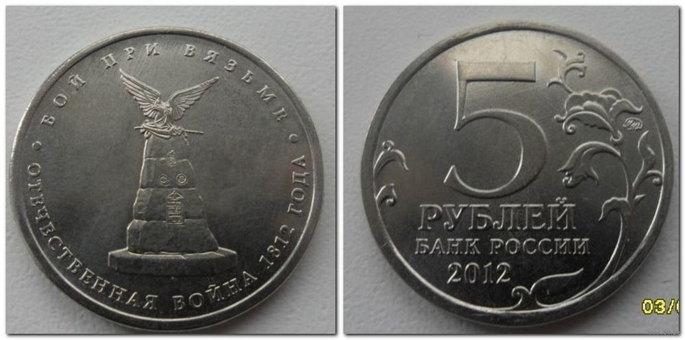 5 рублей Россия 2012 года - Бой при Вязьме, ОВ 1812 года