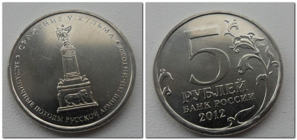 5 рублей Россия 2012 года - сражение у Кульма, ОВ 1812 года
