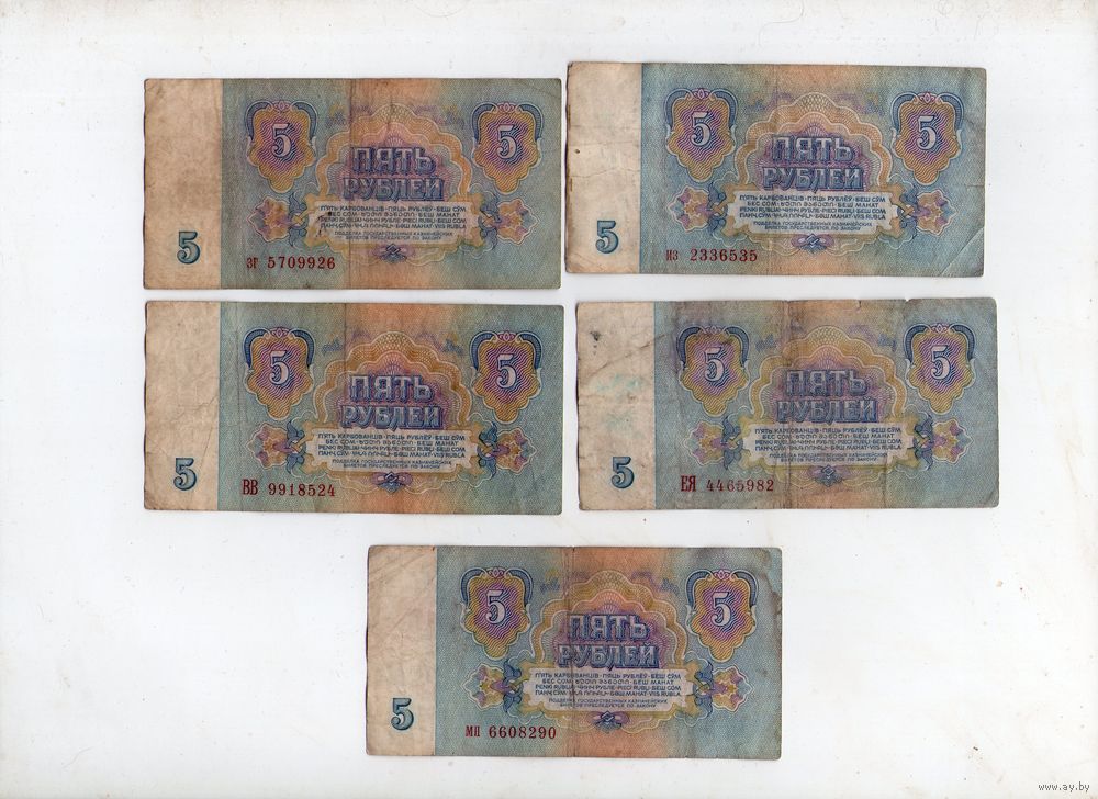 5 рублей СССР. 5 штук. (2)