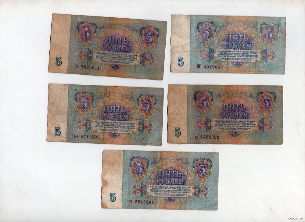 5 рублей СССР. 5 штук. (3)