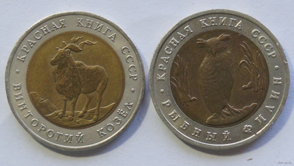 5 рублей винторогий козёл, филин. Красная книга.