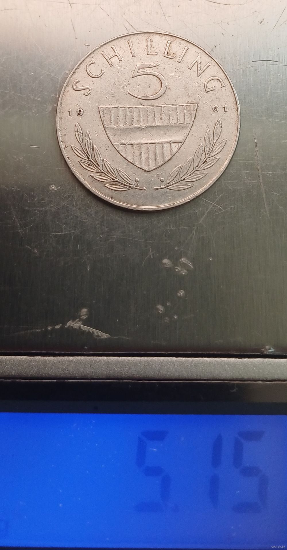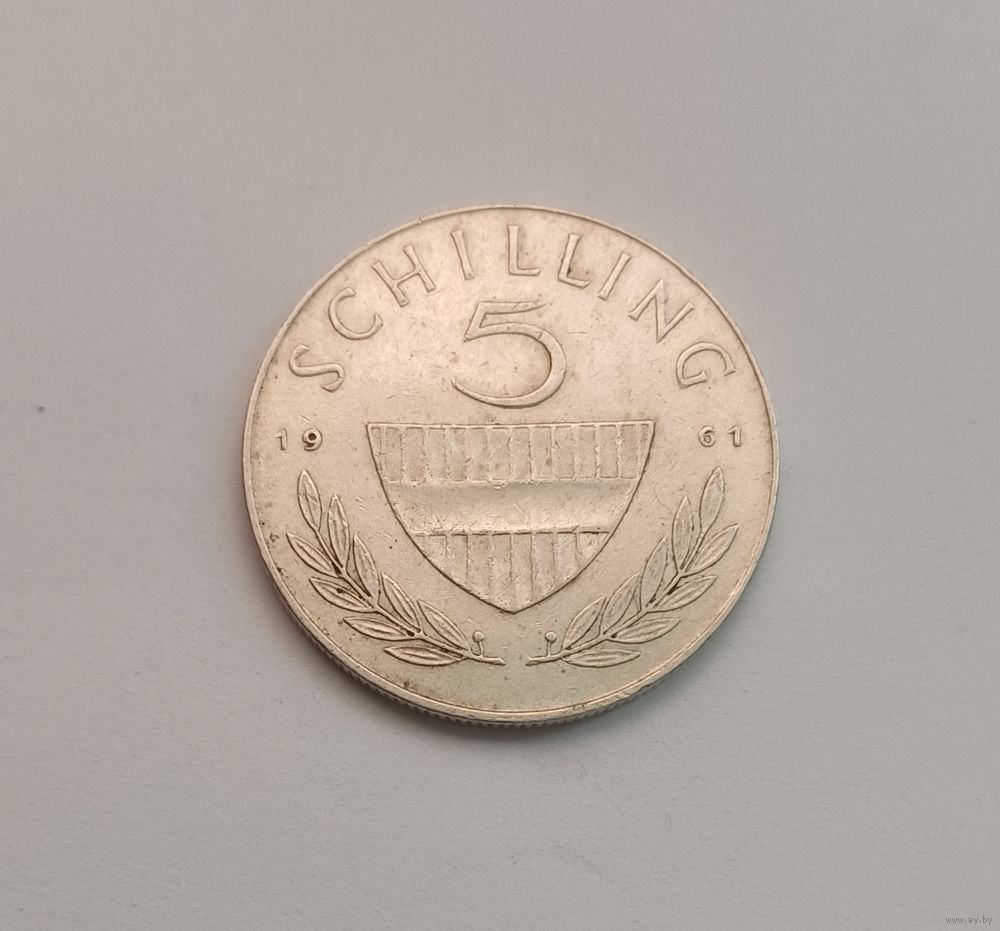5 шиллингов. 1961 г. 640 пр., серебра. Вторая Республика (1946 - 2001). Австрия.