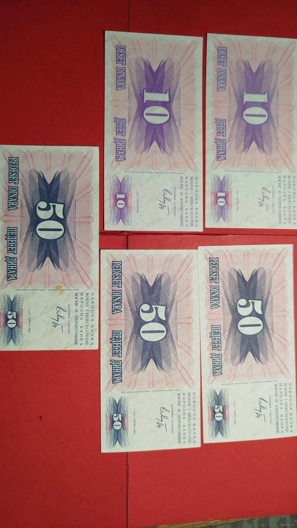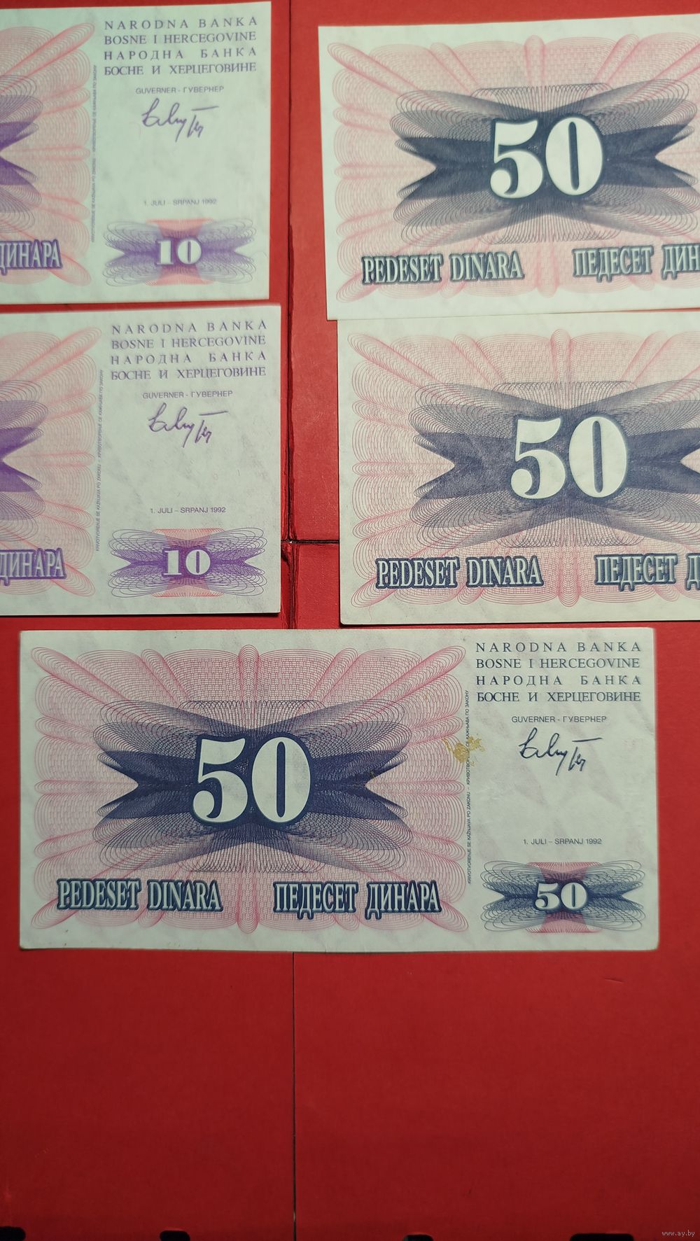 5 шт. Босния и Герцеговина. Динары. 10-10-50-50-50. 1992. С рубля. (13).