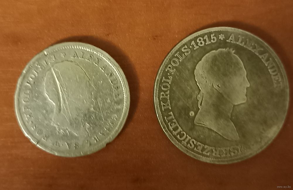 Красивые 5 злотых 1830 год и 2 злотых 1821 год ,Россия для Польши.