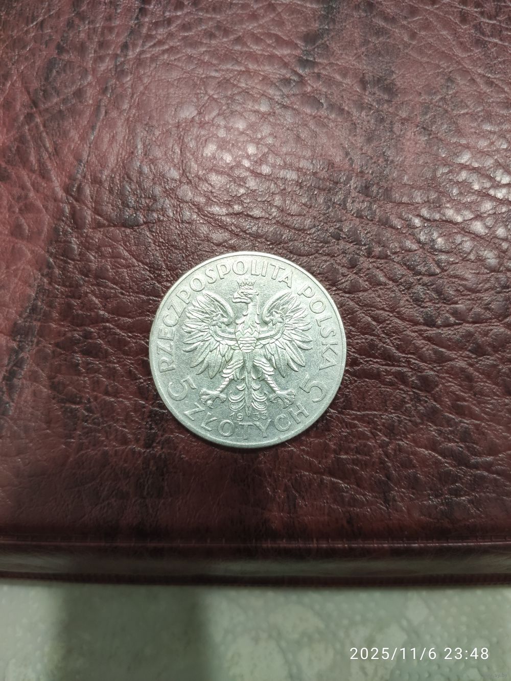 5 злотых 1933. Серебро 0.750. С одной стороны стёрт гурт.