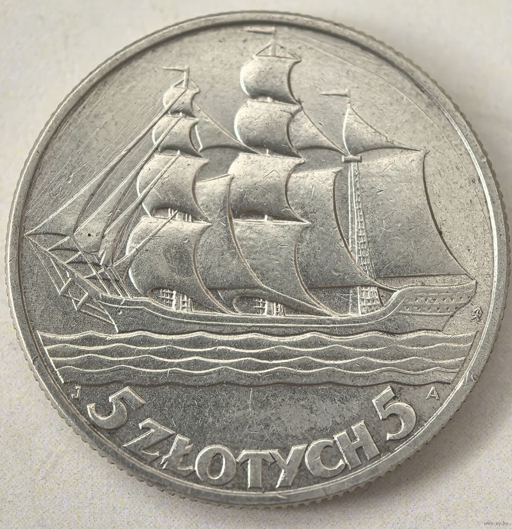 5 злотых 1936 г. Польша. КОРАБЛИК!