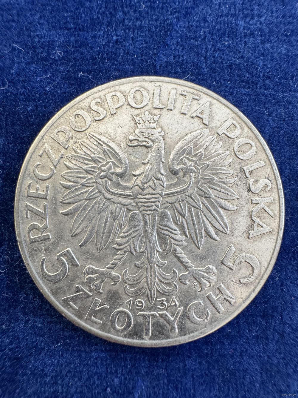 5 злотых Польша 1934 год Ядвига, клеймо под лапой