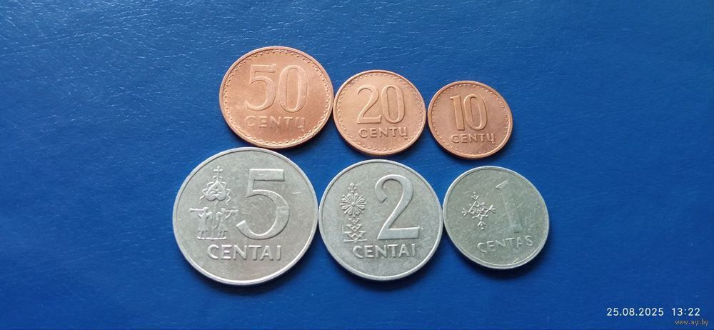 50,20,10,5.2 и 1 центы 1991 год Литва ( Состояние на фото,в лоте 6 монет)