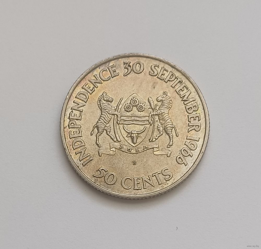 50 центов. 1966 г.800пр., серебра . Ботсвана.Независимость. Тираж 40 000 т.