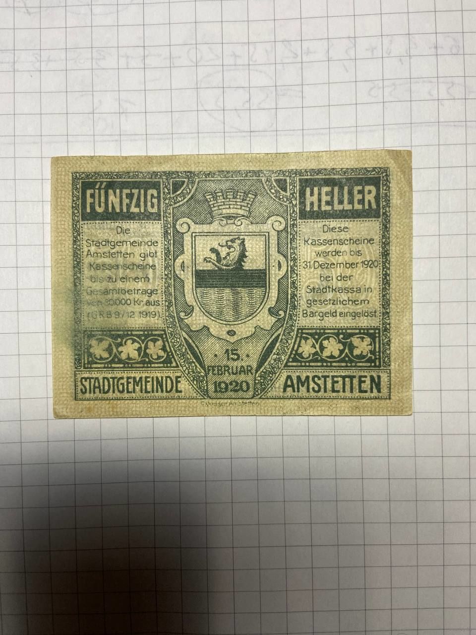 50 геллеров (нотгельды) Австрия.-2212