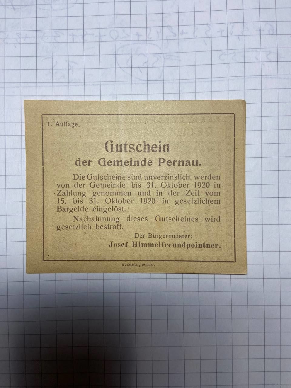 50 геллеров (нотгельды) Австрия.-2212