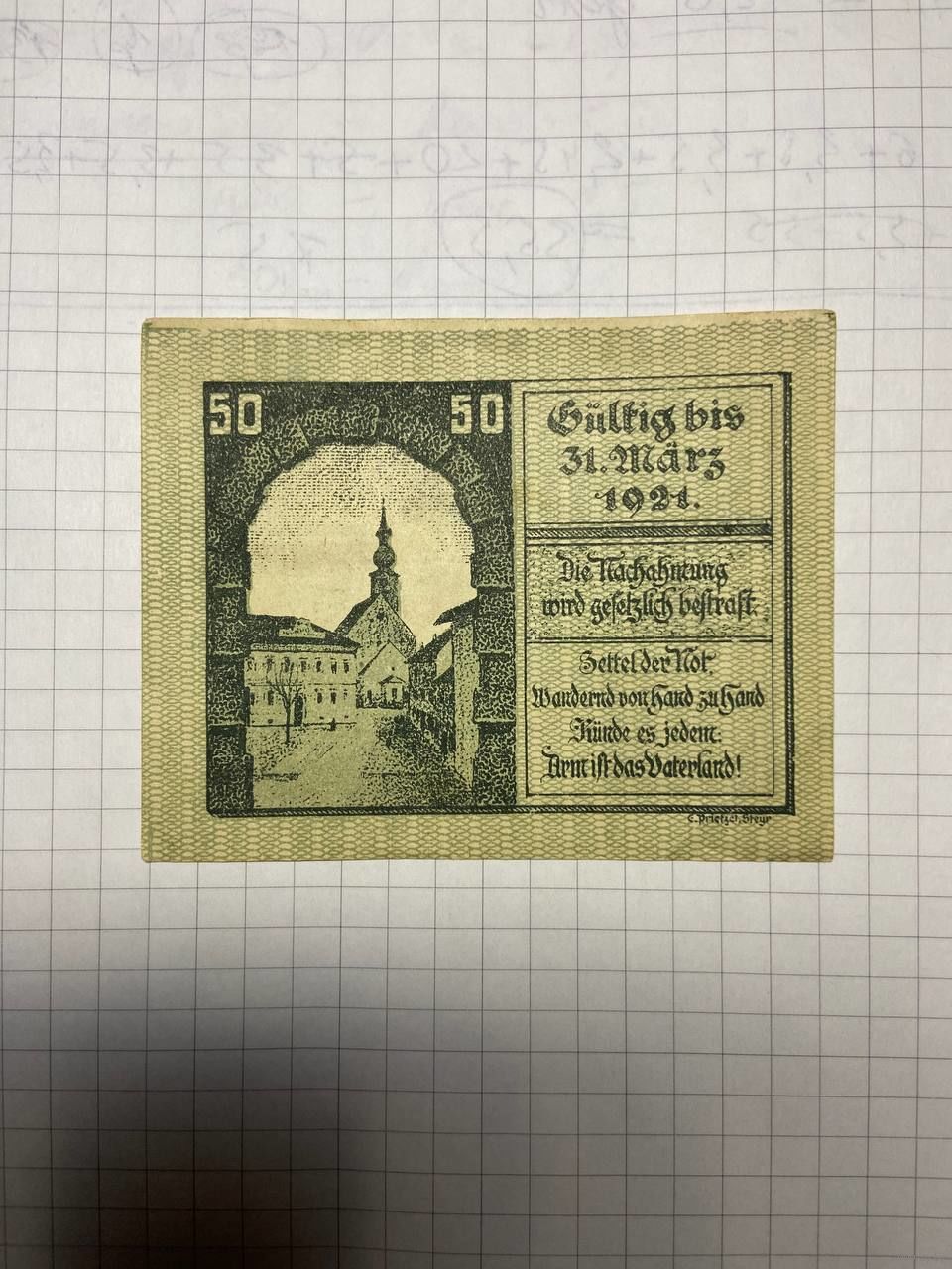 50 геллеров (нотгельды) Австрия.-2212