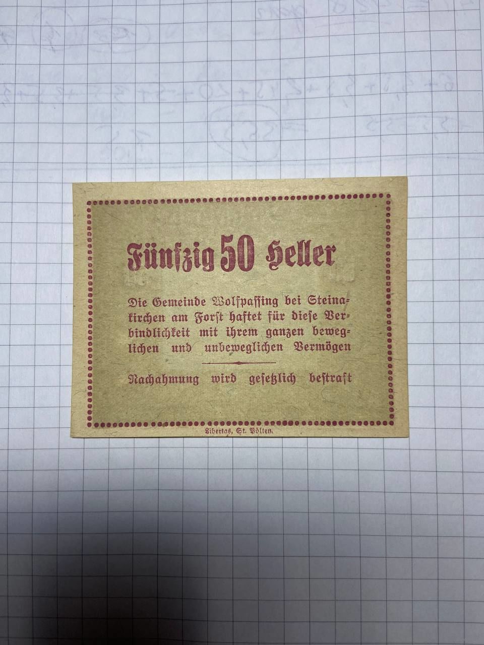 50 геллеров (нотгельды) Австрия.-2212