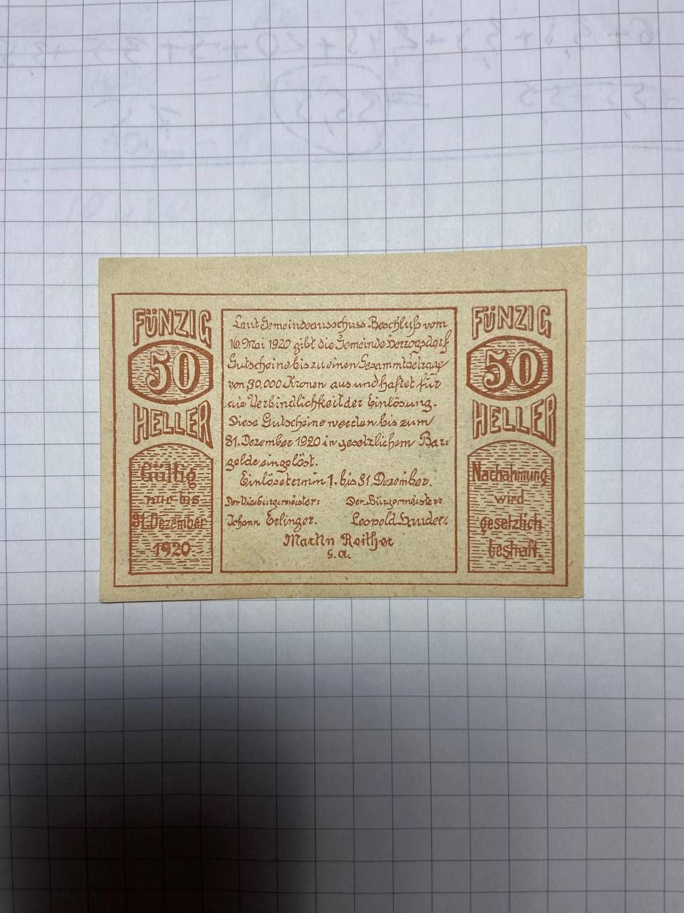 50 геллеров (нотгельды) Австрия.-2212