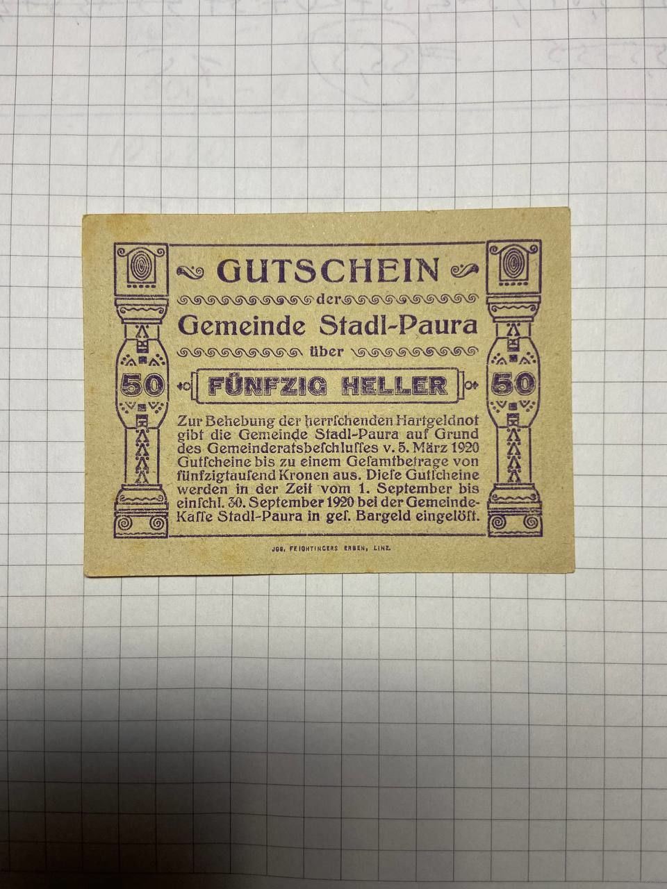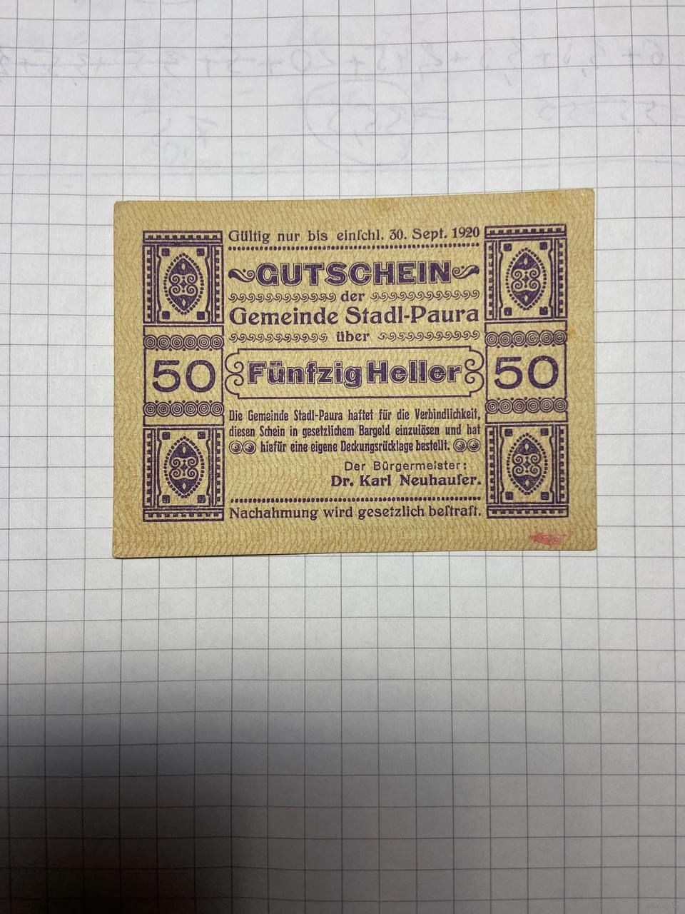 50 геллеров (нотгельды) Австрия.-2212