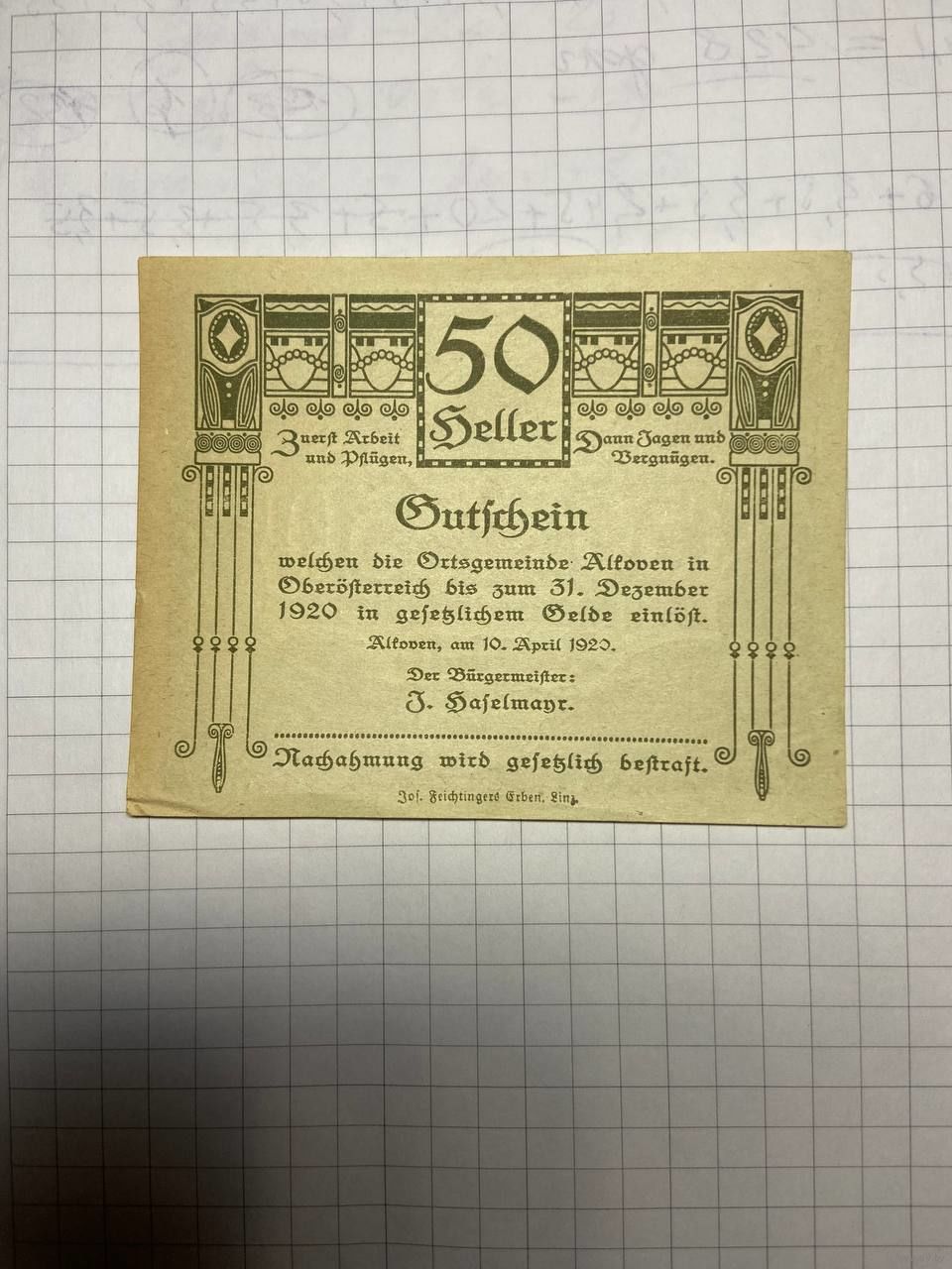 50 геллеров (нотгельды) Австрия.-2212