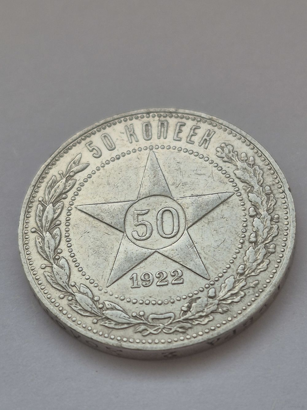 50 копеек 1922 года. ПЛ. Серебро 900. Монета не чищена. 45528.