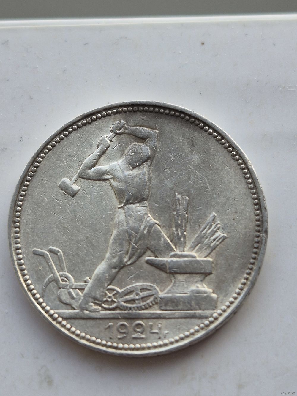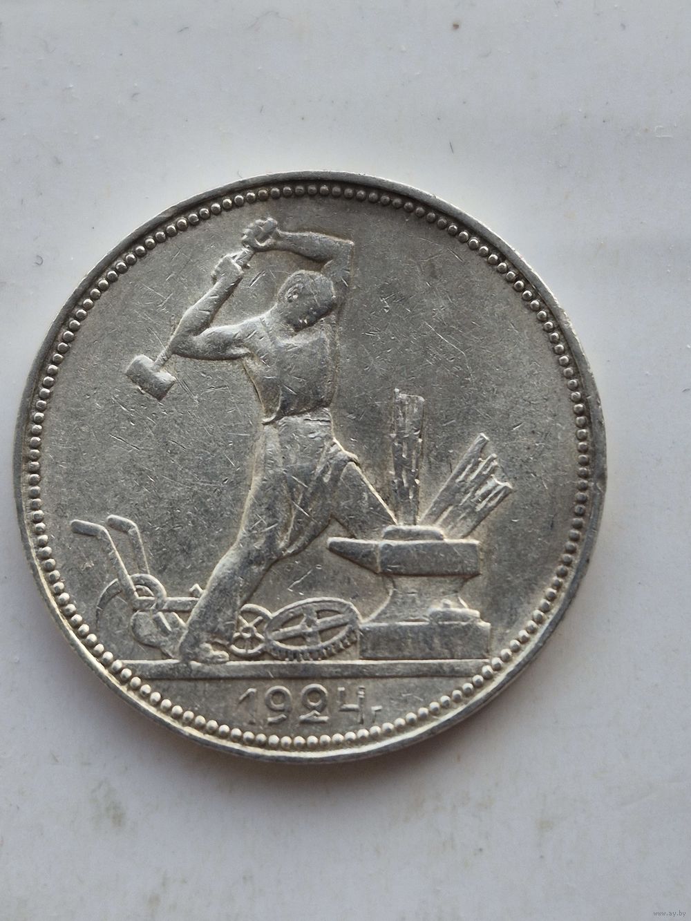 50 копеек 1924 года. ПЛ. Серебро 900. Монета не чищена. 45439