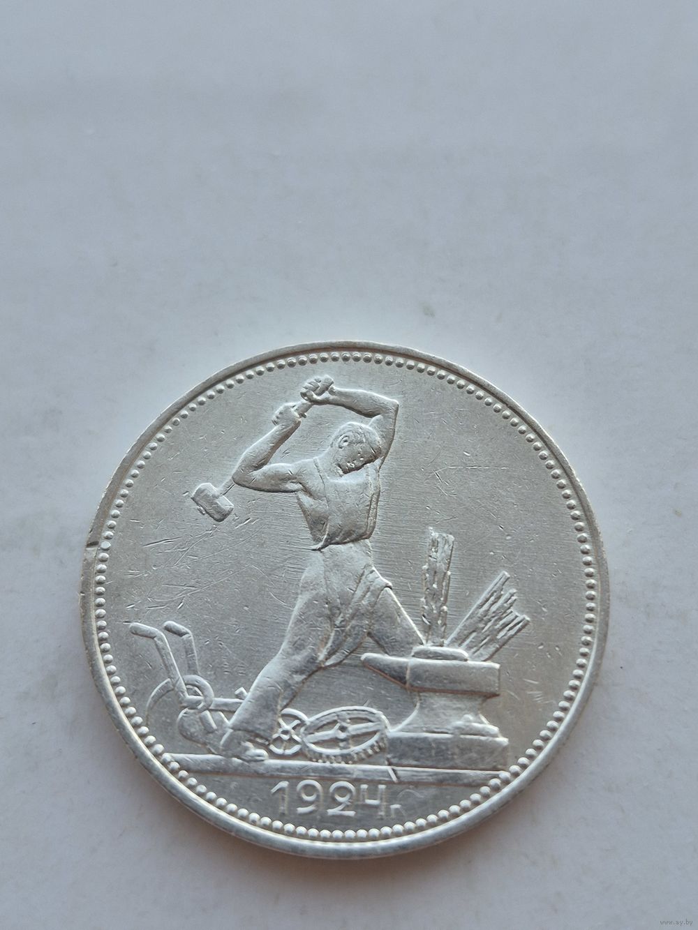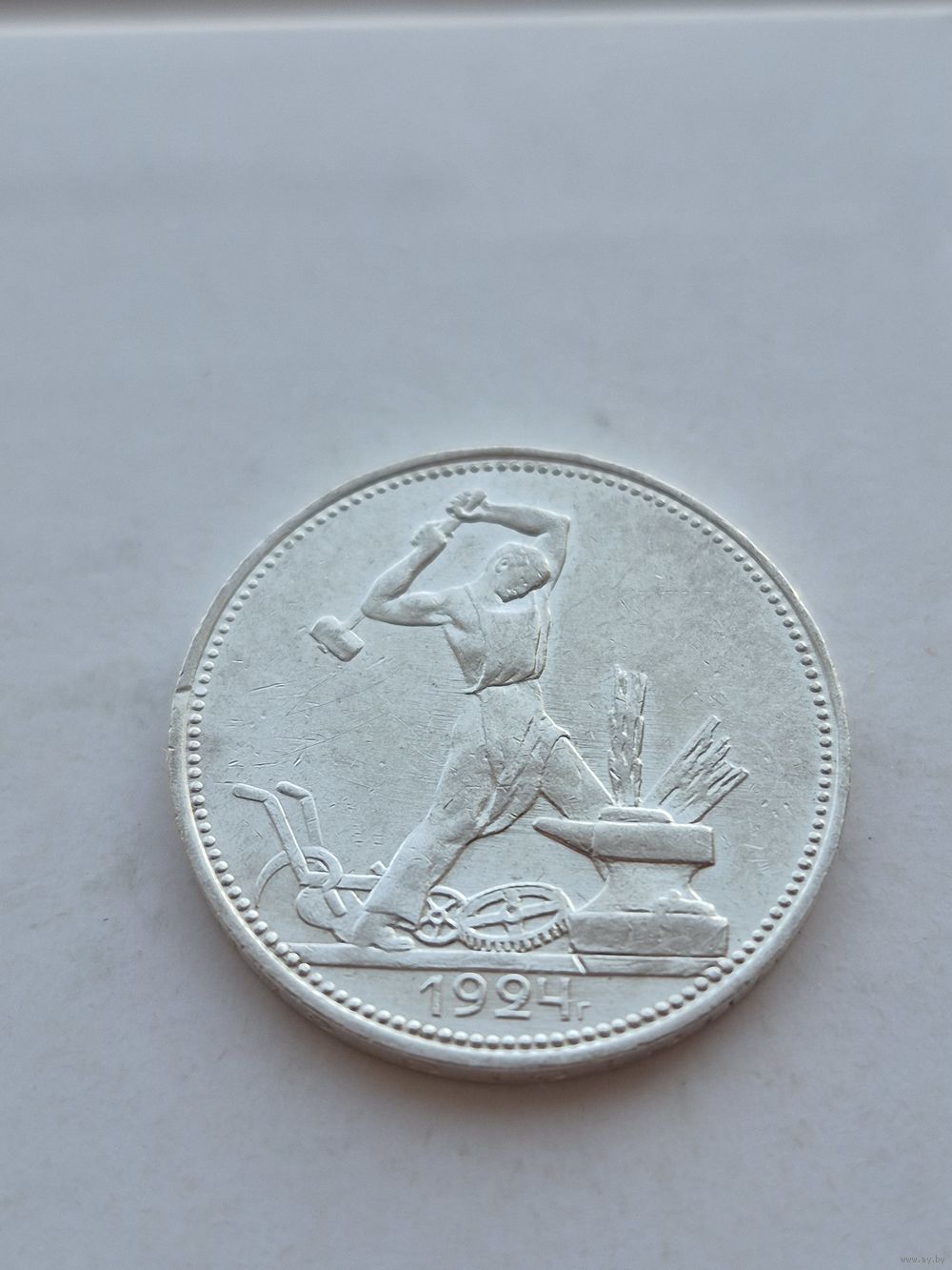 50 копеек 1924 года. ПЛ. Серебро 900. Монета не чищена. 45581.