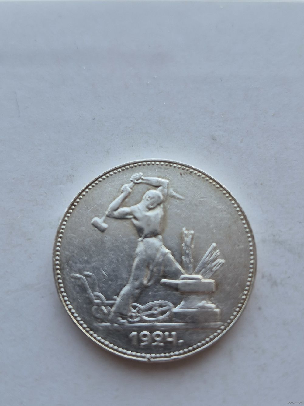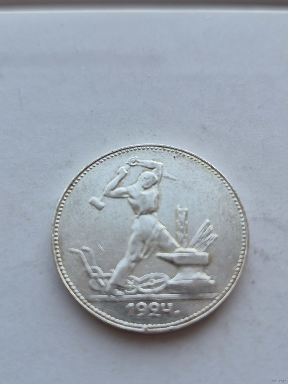 50 копеек 1924 года. ПЛ. Серебро 900. Монета не чищена. 45582.