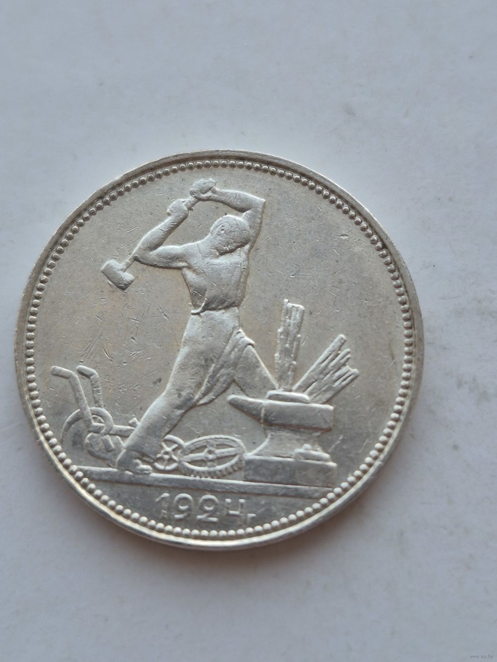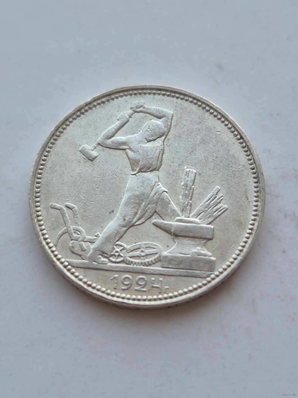 50 копеек 1924 года. ПЛ. Серебро 900. Монета не чищена. 45583.