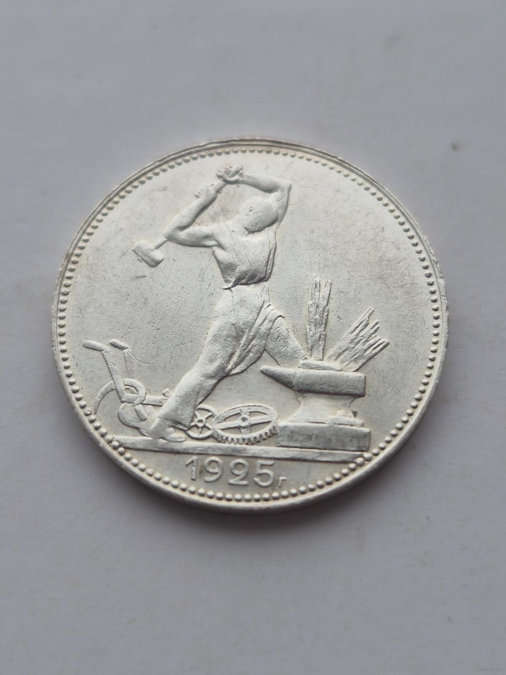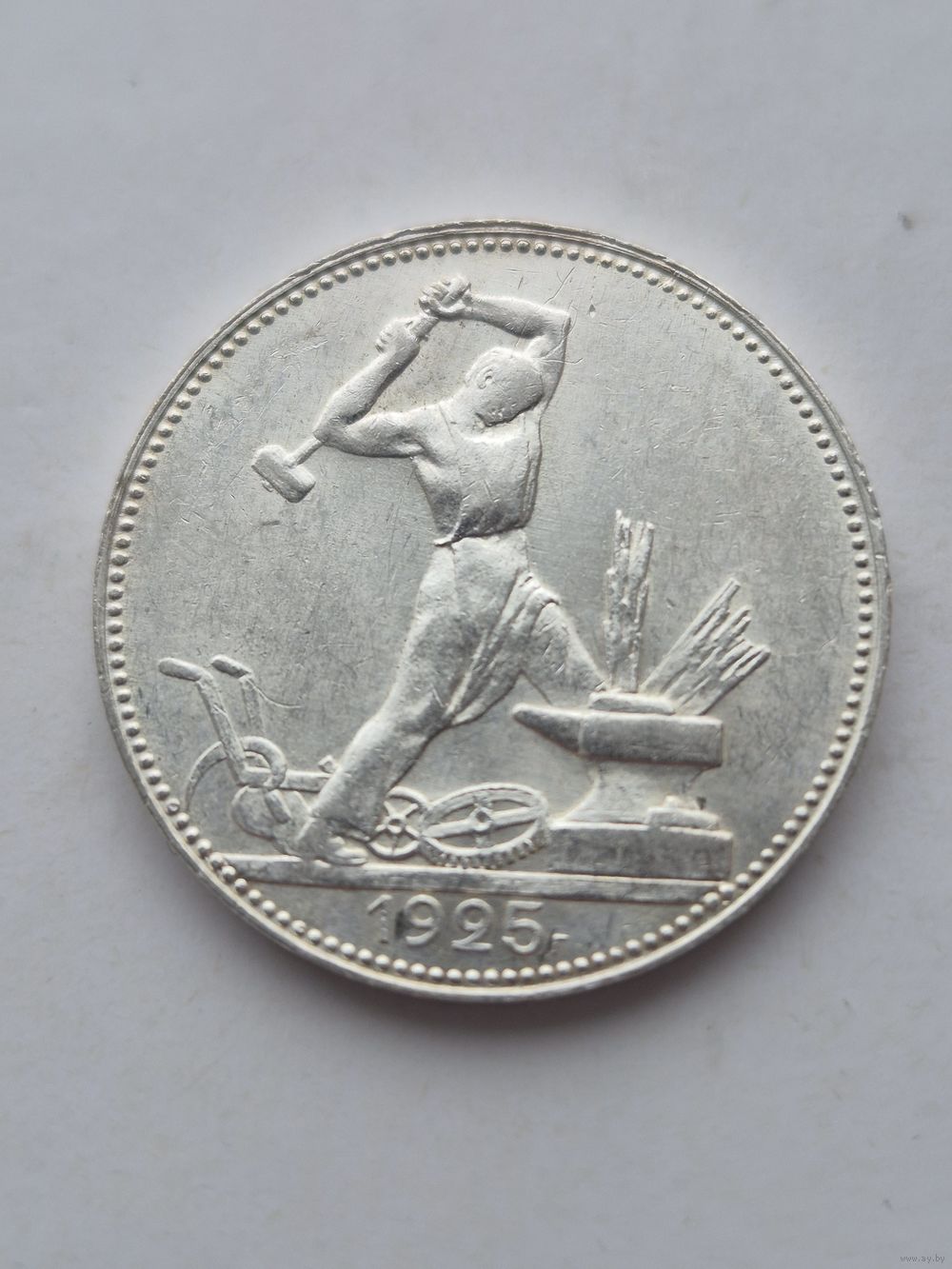50 копеек 1925 года. ПЛ. Серебро 900. Монета не чищена. 45641.