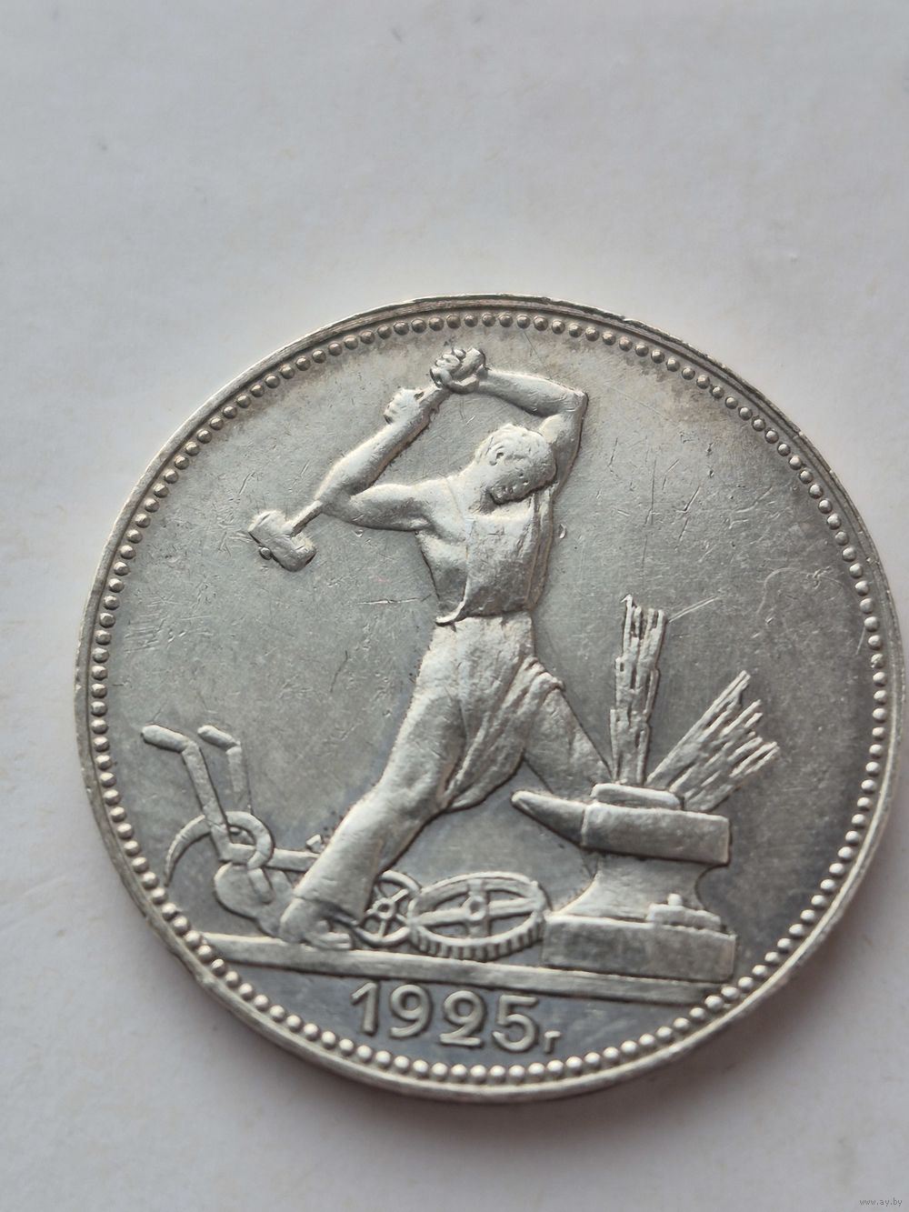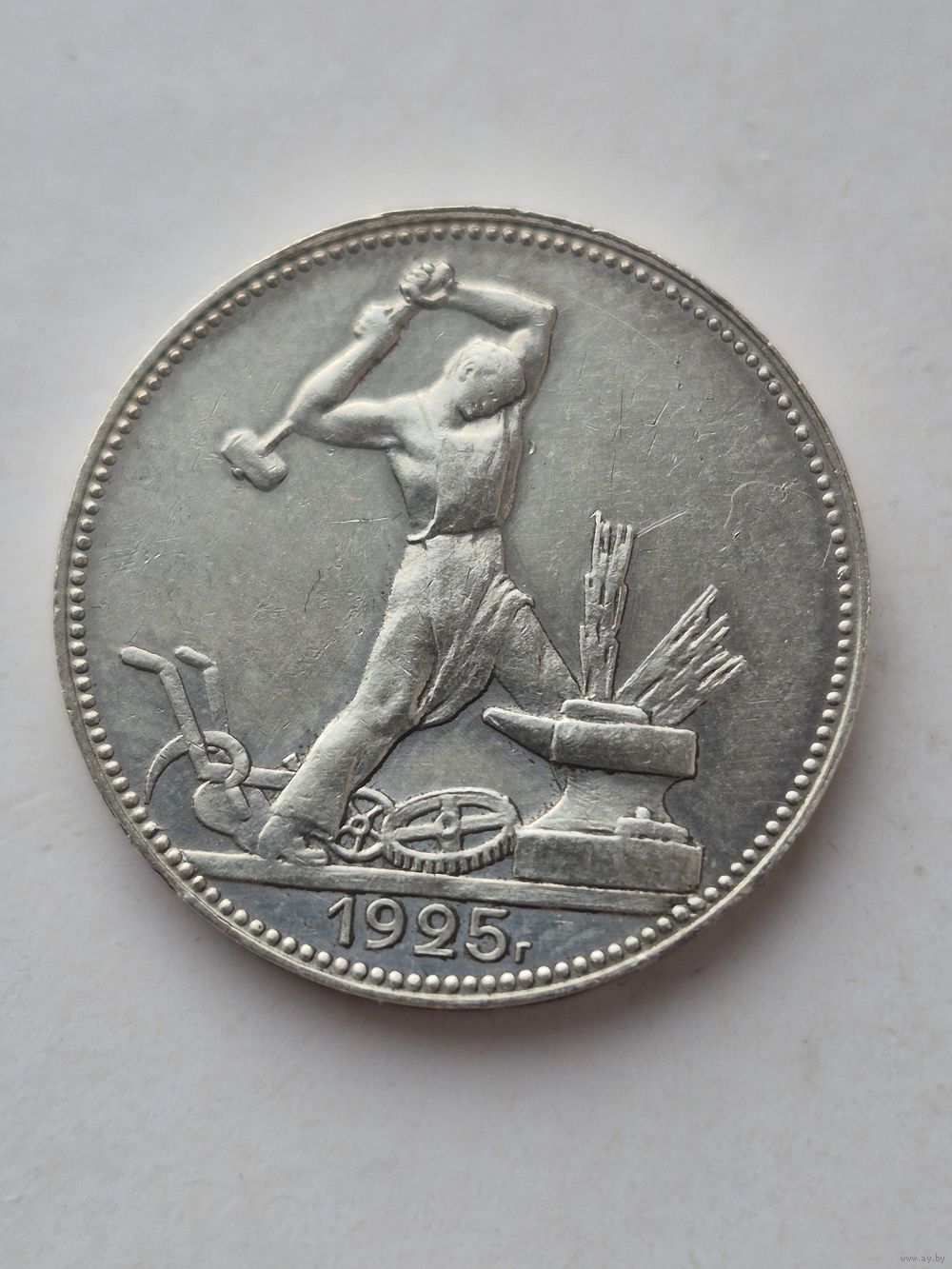50 копеек 1925 года. ПЛ. Серебро 900. Монета не чищена. 45646.