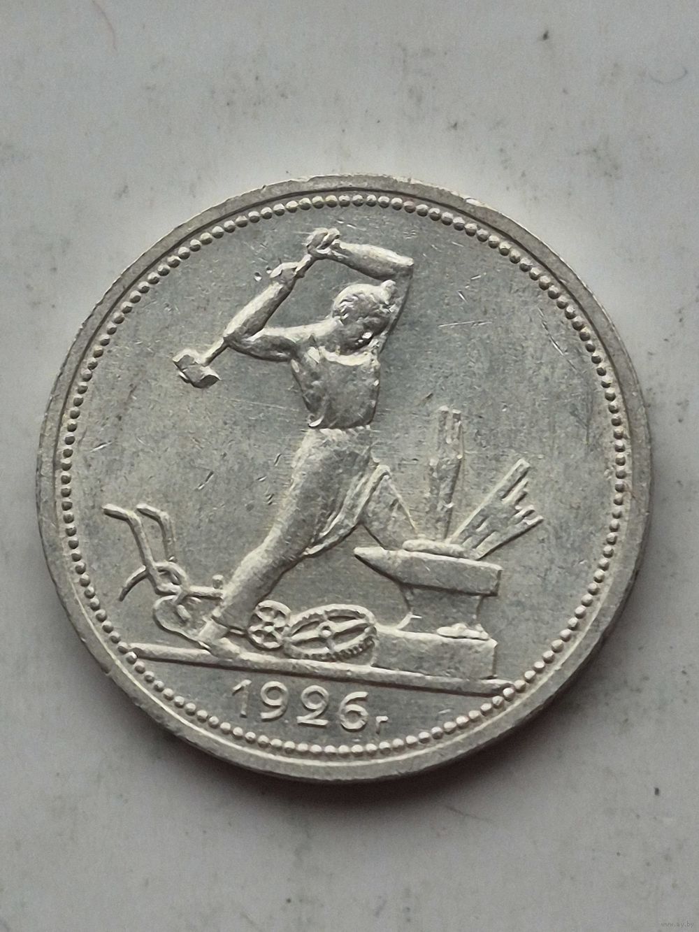 50 копеек 1926 года (АU), яркие, рельефные, в блеске. ПЛ. Серебро 900. Монета не чищена. 302