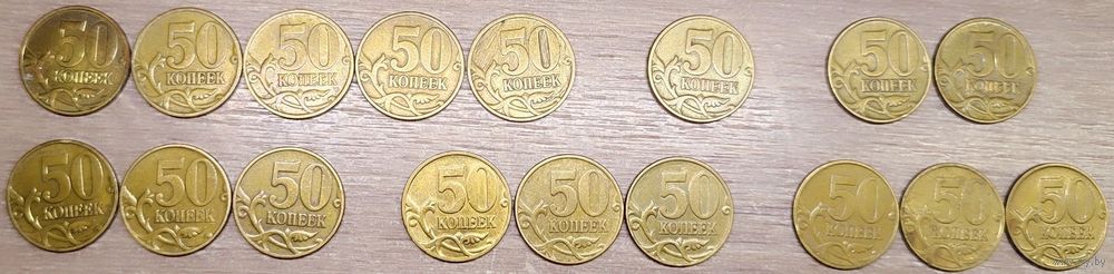 Лот монет номинала 50 копеек 1997-2015 М. Всего - 45шт: