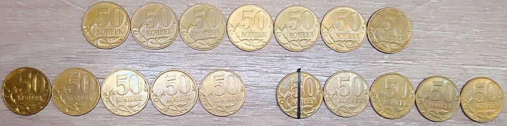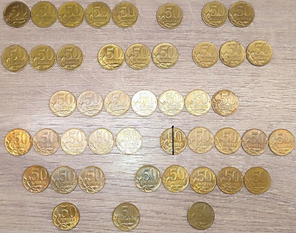 Лот монет номиналом 50 копеек 1997-2015 М общим количеством - 45шт: