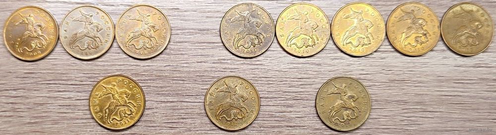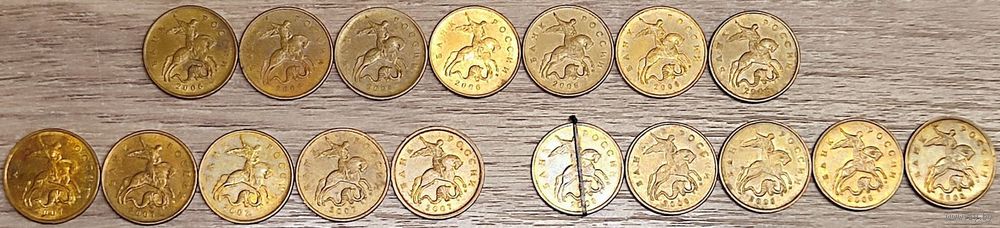 - 2010 М в количестве - 5шт (все магнитные). Из них одна с очень красивой патиной, у одной на аверсе съехавший кант, на одной плохой прочекан 20 и К на аверсе