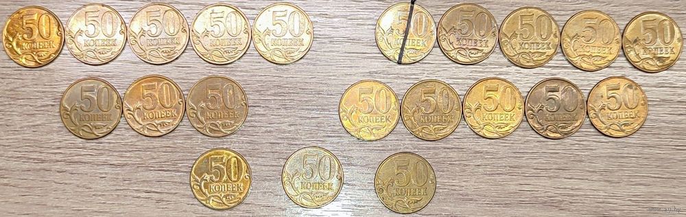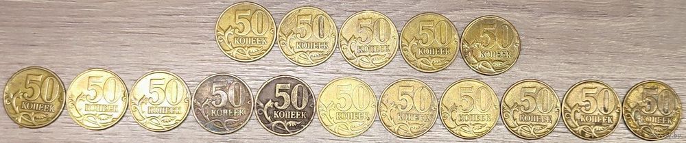 Лот монет номиналом 50 копеек 1997-2015 М общим количеством - 56шт: