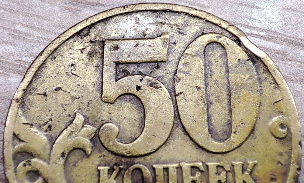 - 50 копеек 1997 М - 1шт. С обильным засором штемпеля аверса и реверса, также присутствуют следы от воздействия различных факторов окружающей среды (фото №2-3)