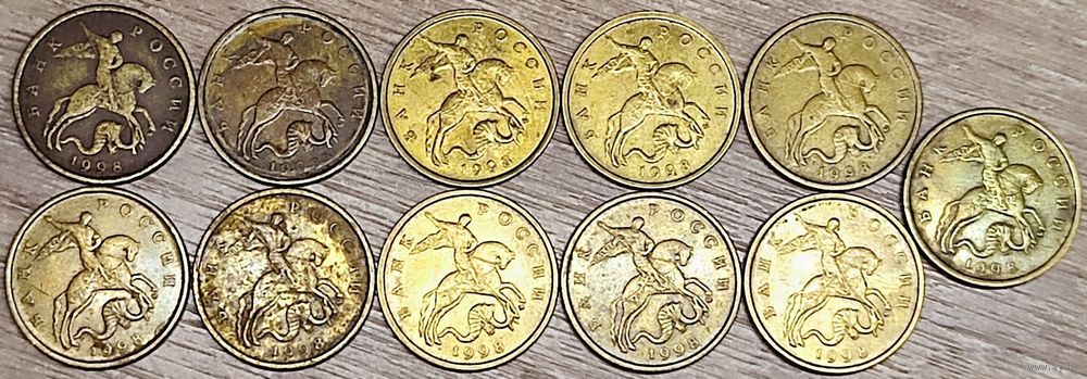 Монета номиналом 50 копеек 1998 М в количестве 11шт (все немагнитные)