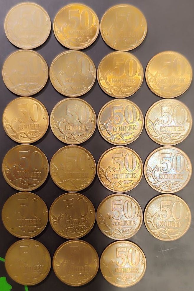 Лот монет номинала 50 копеек 2007 С-П в количестве 46шт (все магнитные), из них: Шт.3-5шт, Шт.4.2-41шт. Есть парочка монет с очень красивой патиной